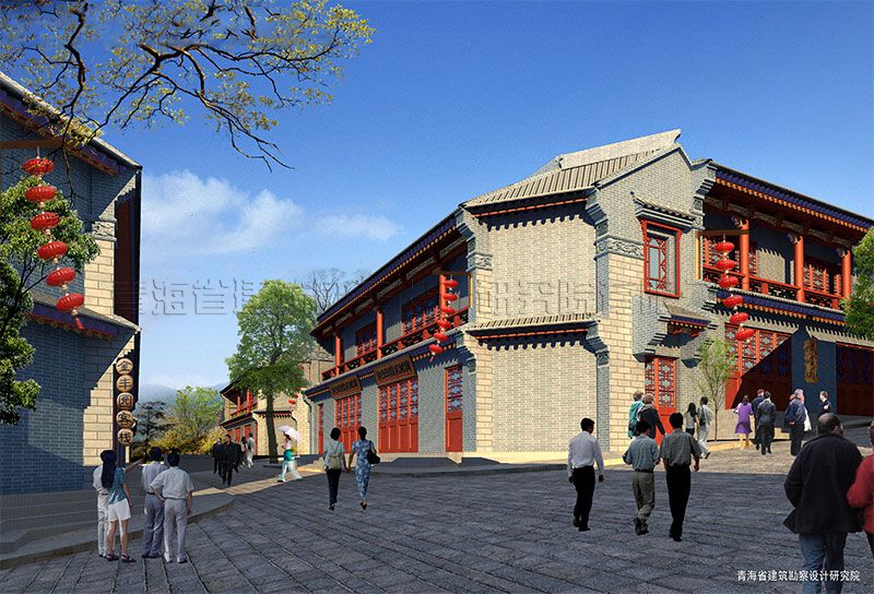 湟源天橋商業(yè)步行街用地位于湟源縣城。北臨丹葛爾古城,南臨東大街場,西臨北大街,東臨西城壕,場地東西寬89.6米~48.6米,南北長約為180米,用地占地面積14476平方米。該用地地塊略呈梯形,地勢北高南低,相對高差13.3米,東高西低,相對高差:1.2-2.2米。區(qū)內(nèi)建筑分(A-G區(qū))八個商業(yè)區(qū),由二層商鋪建筑構(gòu)成,局部三層,建筑布置自由靈活,組團(tuán)明確,基本保證良好的朝向,滿足消防間距要求。建筑立面風(fēng)格以甘青民居明清古建風(fēng)格為主,全力營造仿古建筑商業(yè)步行街,采用青磚面層,小青瓦屋面,硬山墻元素,步行街總建筑面積19308平方米,占地面積14476平米。地上二層,局部三層,建筑高度14.0米,結(jié)構(gòu)形式為全框架結(jié)構(gòu),設(shè)計使用年限50年,抗震設(shè)防烈度7度。